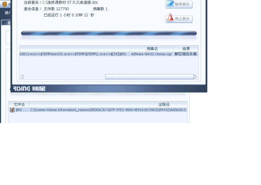 谢谢版主!我不知道该如何回答,就把杀毒屏幕复制粘贴上来了