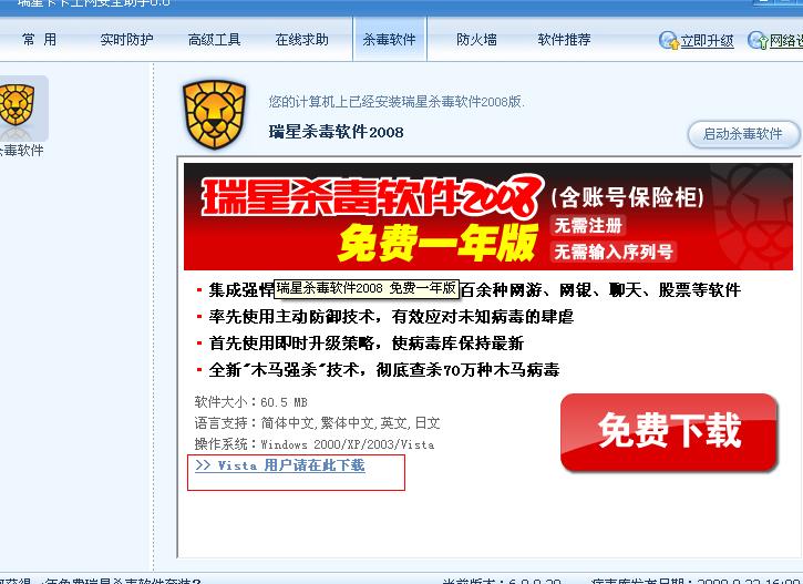 你现在安装的是瑞星杀毒软件网络版,包含单机版的部分功能,无需安装单机版。如果要升级,清直接升级网络版。