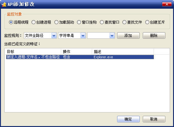 该规则的含义是:如果病毒注入了iexplore则报警。
