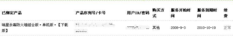 我是2008年的7月6日,在瑞星网站购买的下载版一年组合套装。。。没过度长时间。。瑞星就来了个什么免费延时。。。但是又说组合版的用户不能享有。。。这是凭什么啊????难道我们组合版得用户就没花钱????亏我用瑞星用了好几年了。。。。你要我们这种老用户还活不活了???要知道是这样。。。还不如不花钱买瑞星呢。。。