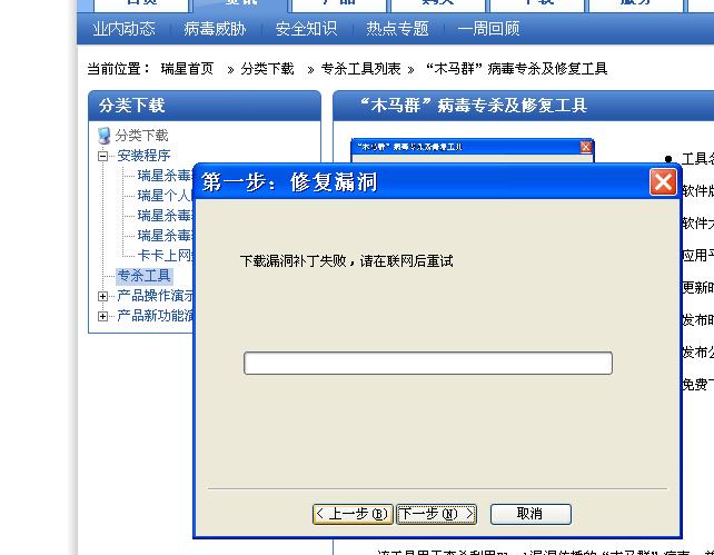 我是在建立安全环境后,下载升级程序并安装,再次运行建立安全环境并重启,启动时的瑞星扫描发现并清除了四个病毒。启动后就可以打开瑞星杀毒了,扫描发现并清除了六十多个染毒文件!