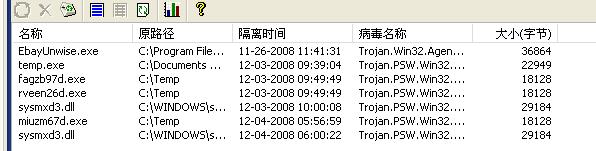 我在家玩MXD私服的,玩的时候瑞星没提示过发现病毒和受到攻击什么的,电脑重启后就发现瑞星不能运行了,开机也不能启动,点到文件夹里也打不开~这是什么原因。病毒隔离系统里就这些文件,12月3号后的都是玩冒险岛私服后才出现的,请问是不是私服有问题?可是安装和运行时候瑞星都没提示有毒啊``````