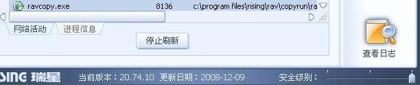 关闭瑞星的自我保护尝试升级,另外看进程里是否有ravcopy.exe这个进程,有的话结束掉,然后再升级