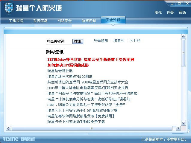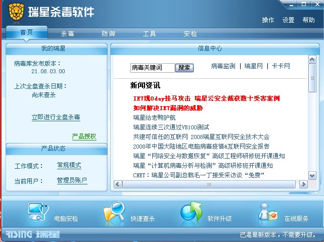 总的来说,瑞星正式版本比公测版本确实有所长进,很高兴。虽然这晚了,可是见到这人新家伙还是觉得哪怕是牺牲睡觉时间也和大家分享一下快乐!