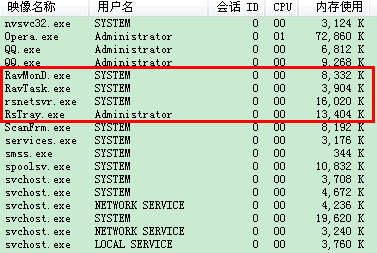2个Ravtask.exe , 3个RsTray.exe