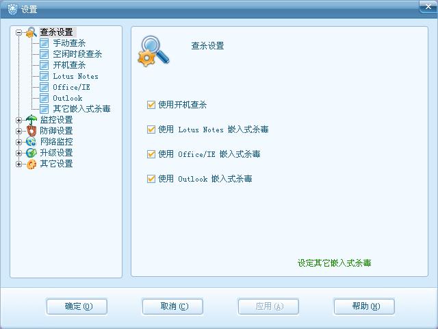 楼主点击上面的“查杀设置”,就会出现下图所示,知道如何设置了吧?