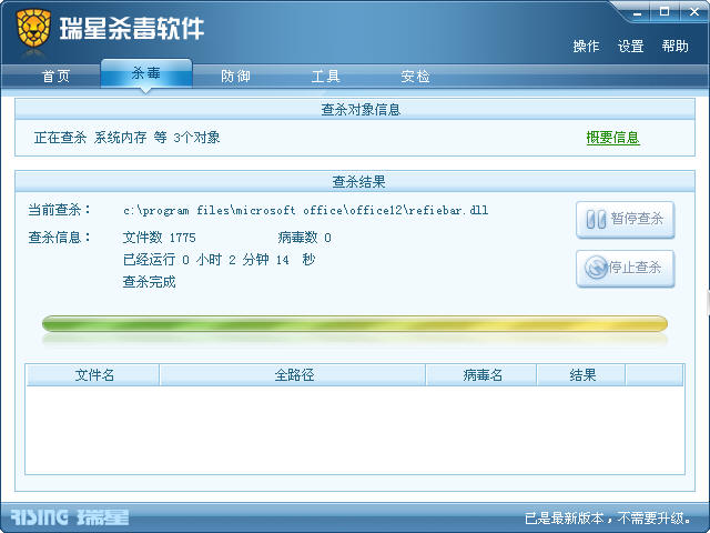 回复: 今天早上刚在线升的级到2009,这是全盘查杀速度。