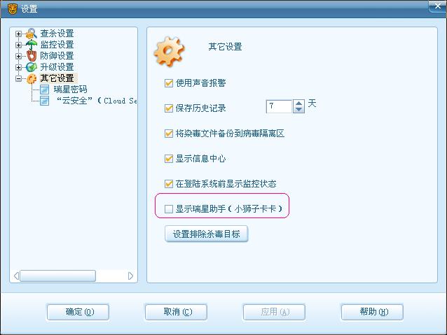 回复: 瑞星助手(小狮子)如何长期关闭?