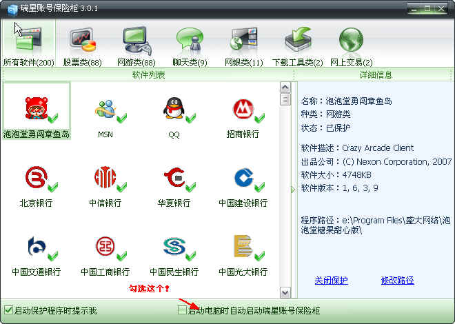开始-所有程序-瑞星杀毒软件\瑞星全功能安全软件-瑞星工具-账号保险柜!
