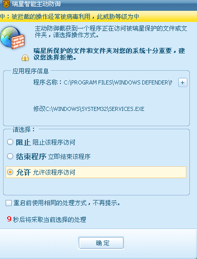 我发现瑞星杀毒软件2009老实烦呢!每次开机老弹出个窗口问你是否允许运行,,而且是1个问题弹10多次,郁闷 ,如果你点了否IE都打不开,以前2008不会这样啊,升级到2009就出这个问题希望有知道这个问题的告诉下怎么处理才可以让他不弹,谢谢,瑞星是最新版本的,图在3搂。