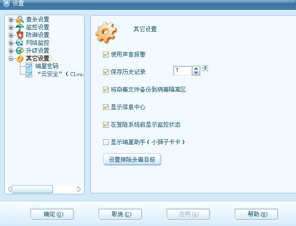 打开杀毒软件---设置----详细设置-----其他设置-----把瑞星助手前面的对勾去掉!