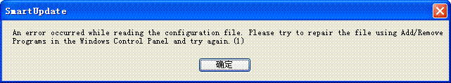 2 点击Upgrade,无法升级,系统提示“An error occurred while reading the configuration file.Please try to repair the file using Add/Remove Programs in the Windows Control Panel and try again.(1)”