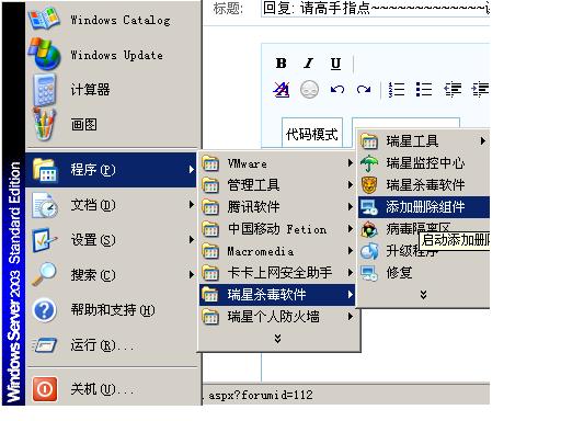 开始-程序-瑞星杀毒软件-添加删除组件-添加删除。