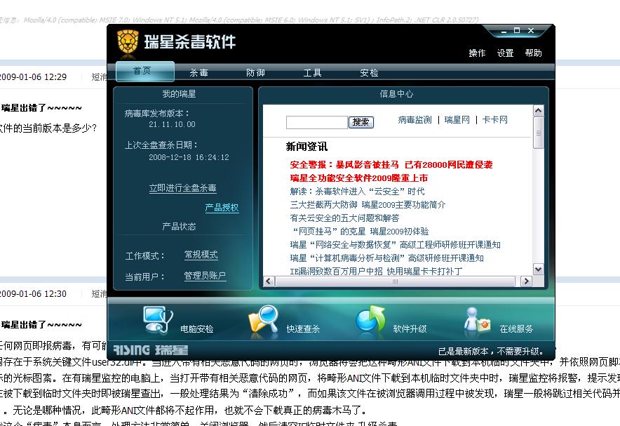 回复:瑞星出错了~~~~~