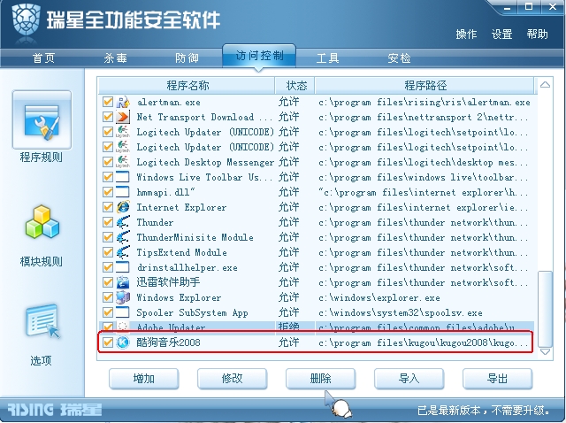 不管你打算不打算处理这个问题,最少也给用户自己设置的窗口啊! 我到处找端口设置,把酷狗和TS所有的文件都丢白名单里,依然解决不了问题,瑞星打算什么都自己说了算不给用户一点权利??  丢白名单里我一向觉得什么都知道的瑞星居然在白名单里显示这2个软件是红色的“未知”??