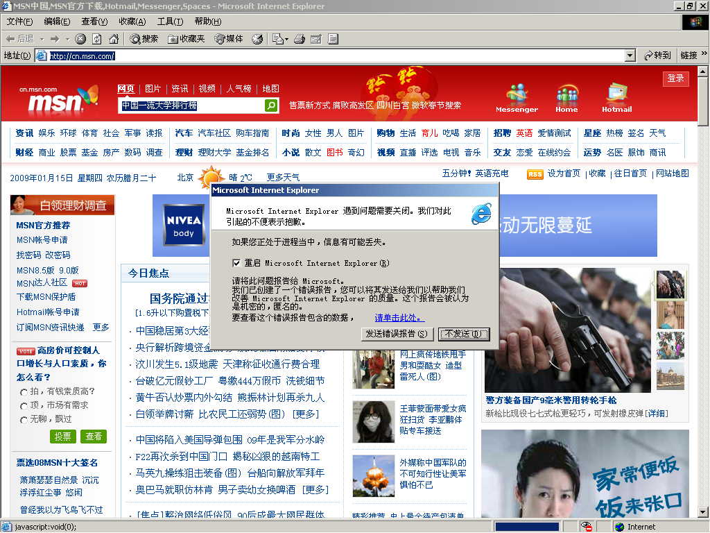 IE总是频繁出错重启,求高手帮忙,2000系统,补丁全装,瑞星全套最新版本,傲游一样,firefox出错几率会小一点,有时也会,最初发现局域网某台机器用IE打开网页出现乱码,格式化重装不能解决问题,于是打开瑞星防火墙arp欺骗防御,就出现出错现象,现在几乎每台机器都这样。