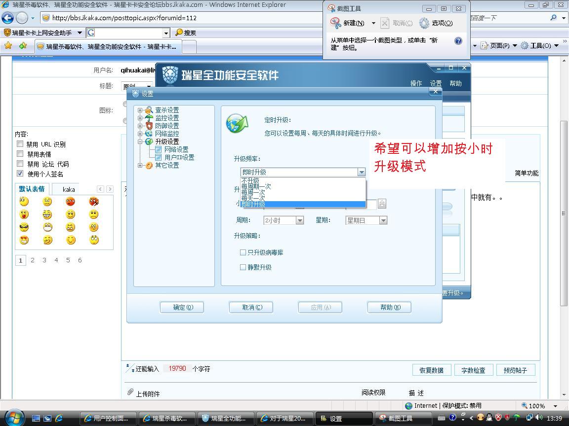 1.改善瑞星全功能安全软件的升级模式,在升级选项中没有按小时升级模式。而单机版的瑞星防火墙2009的升级项中就有。。