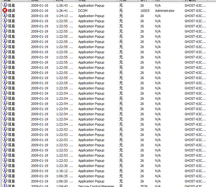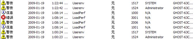 打开:事件查看器后 刚才的操作有很多的 错误信息