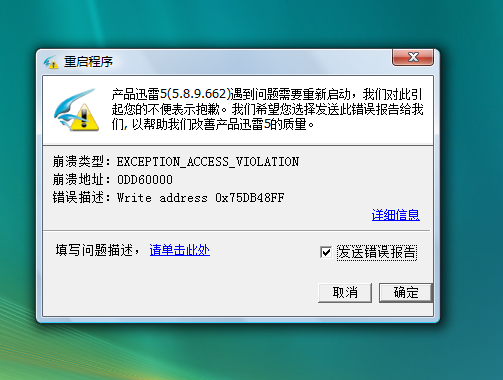 3、保险柜与迅雷5.8.9.622出现冲突,打开保险箱后启动迅雷,会在展开迅雷界面时导致迅雷写入内存错误,自动出现迅雷软件退出并重启。(不启动保险柜迅雷就可以正常工作)