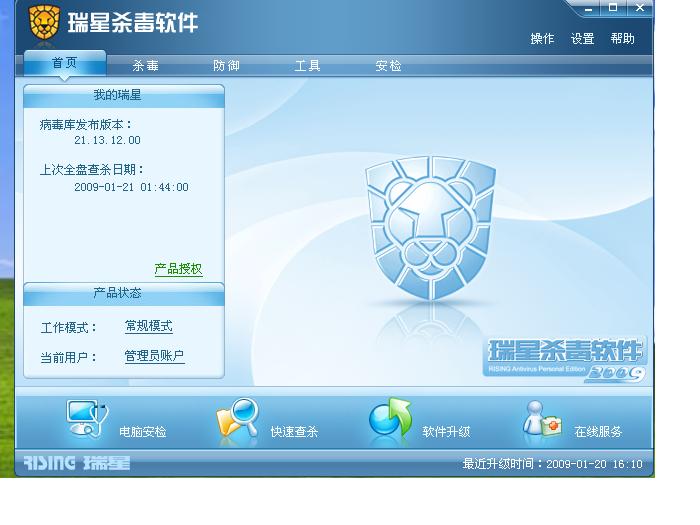 另外附上截图,不知道是不是该升级还是激活啥的。。。第一次用瑞星,昨天下载的是08永久免费直接升级到了09版的。。。