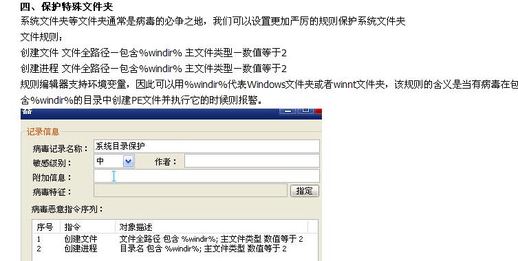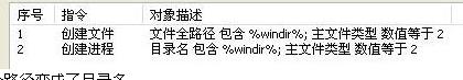 这2条规则就是当有病毒在包含%windir%的目录中创建PE文件并执行它的时候则报警。