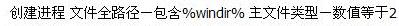 创建进程 文件全路径-包含%windir% 主文件类型-数值等于2