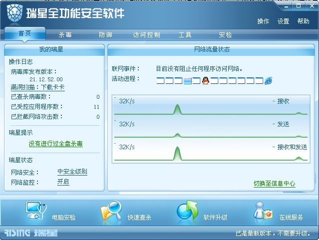 首先我们要开机启用这两项监控,就是我们在系统欢迎界面左上角看到的瑞星图标~~
