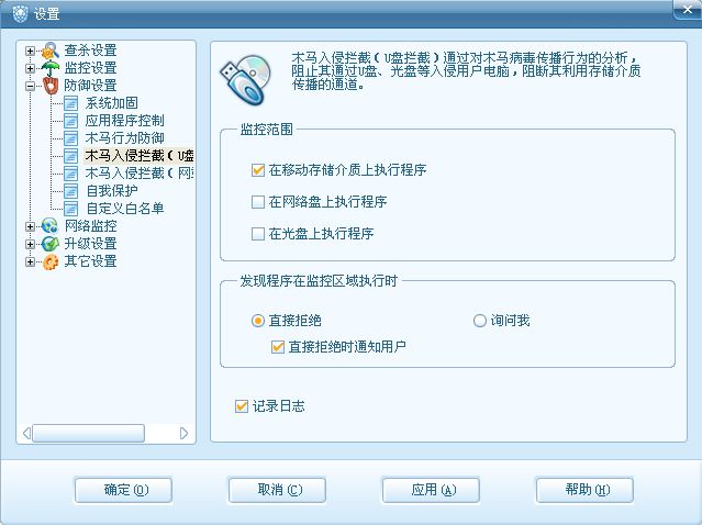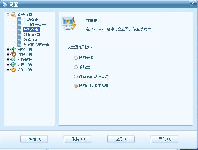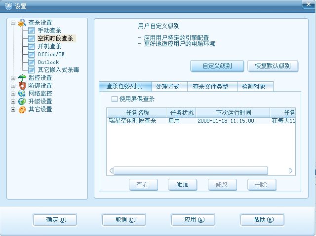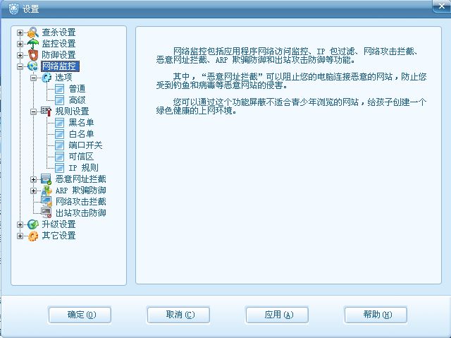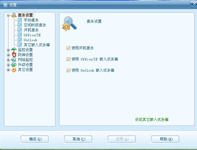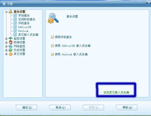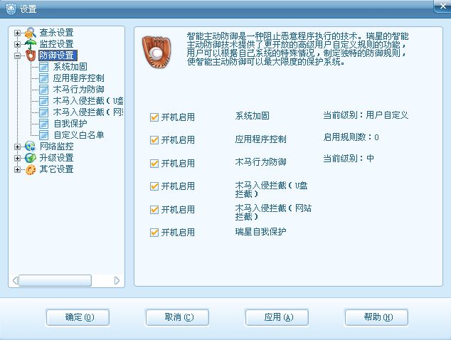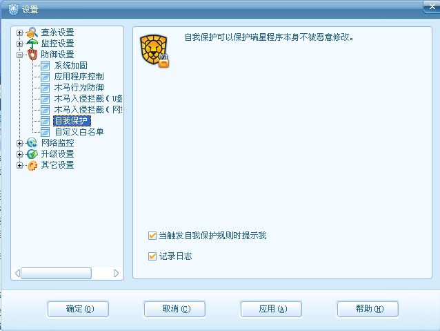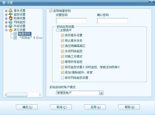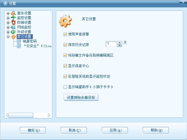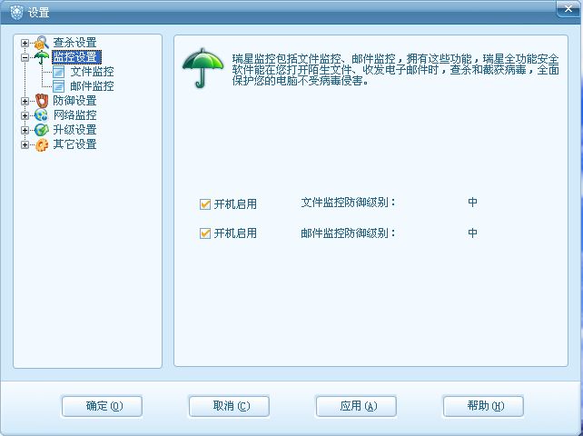 监控设置”,这是瑞星实时监控,我们可以在这里设置: