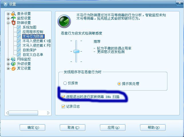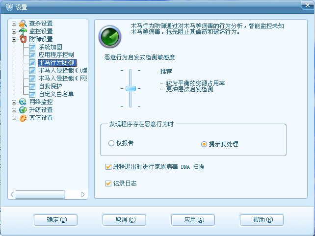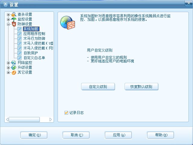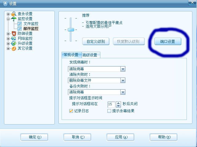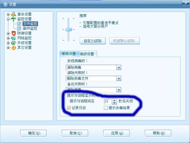这里我们可以设置提示消息的显示时间,记录杀毒日志,提示杀毒结果~~