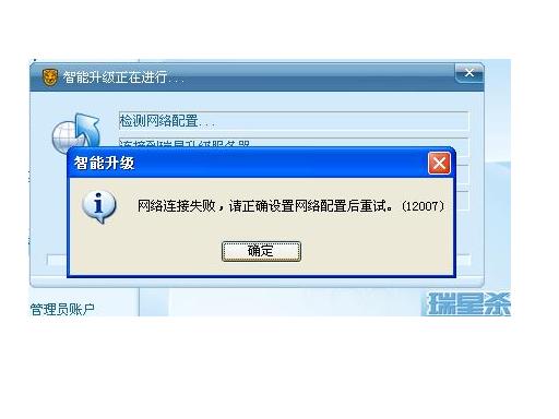 我的瑞星单机板自从一个星期前中毒重装系统后就再也不能连上网了,我打了两次电话到瑞星求助都不能帮到我,现在只有靠一个“升级异常信息收集”才能升级,可是关闭了这个“升级异常信息收集”重起系统,瑞星还是不能连上网不能升级,连一个毒都杀不到。升级时的提示是:网络连接失败,请正确设置网络配置后重试。(12007)