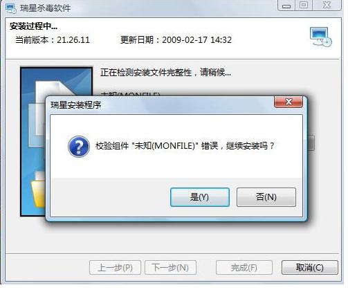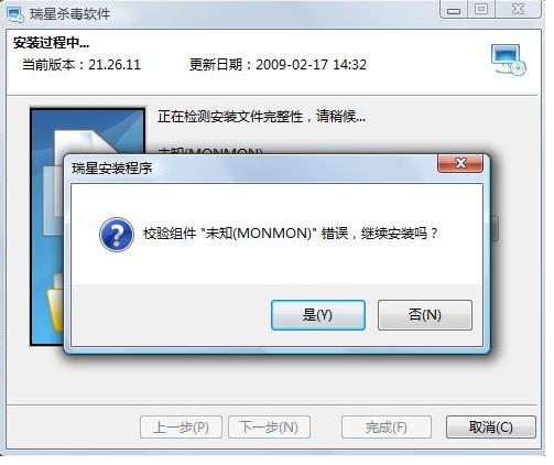 可是今天升级时又蓝屏了,我好郁闷。于是在安全模式下升级瑞星,蓝屏倒是没有,弹出一大堆的所谓未知错误,问我是否继续安装,我点“是”,升级似乎是成功了,我回到正常模式,感觉好像不对,于是我修复瑞星,结果又弹出“未知错误”,我连点12个“是”之后蓝屏,12个未知错误截图附后。