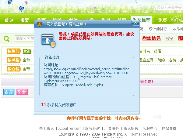 瑞提示腾讯QQ秀官网出现木马,是误报?