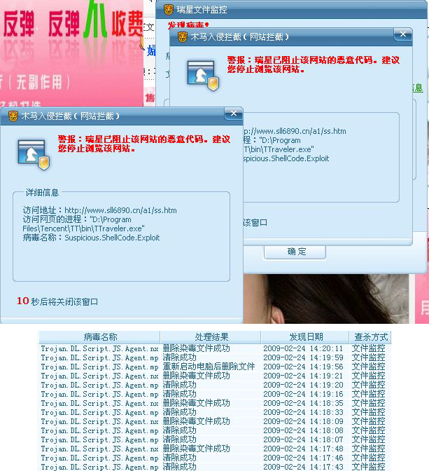 瑞星09版的恶意网址拦截也不错的。