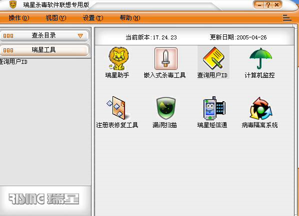 我的瑞星是买联想电脑自带的...点查询用户ID,,提示注册程序已经更新,,请升级到最新版本进行注册..但是我还是不能升级啊
