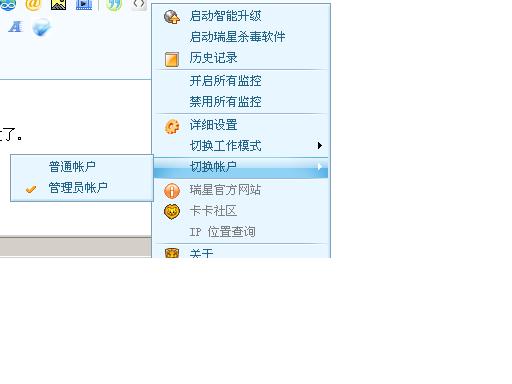右下角小绿伞,右键单击,如上图选择管理员账户,就可以更改了。