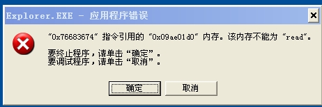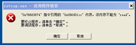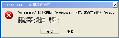安装后经常在关机时出现以下对话框,没法扑捉,这次居然在平常状态出现,终于可以抓下来了,给大家看看,是什么问题?