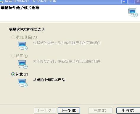 请卸载瑞星后,不保留配置文件,删除安装目录后重新安装瑞星。