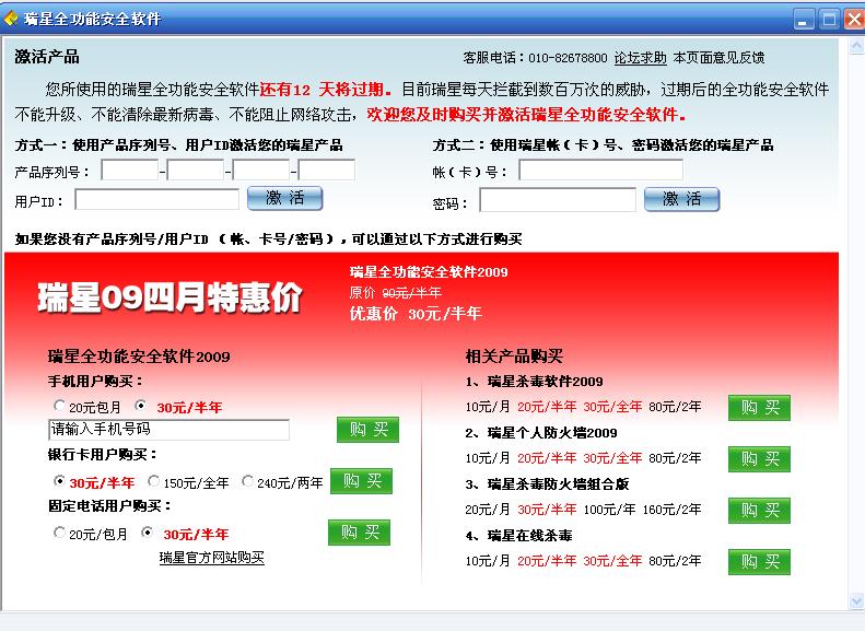 回复: 手机钱包买的瑞星杀毒提前到期了?