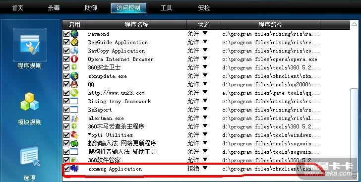 [求助] 怎么设置瑞星2010 可以禁止某个程序?