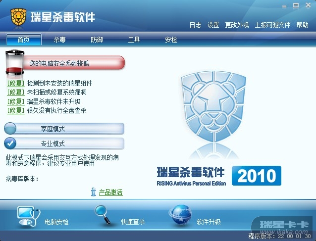 以前的版本一直用的很好 可是在用2010时发现不能杀毒 点击全盘杀毒没有反应
