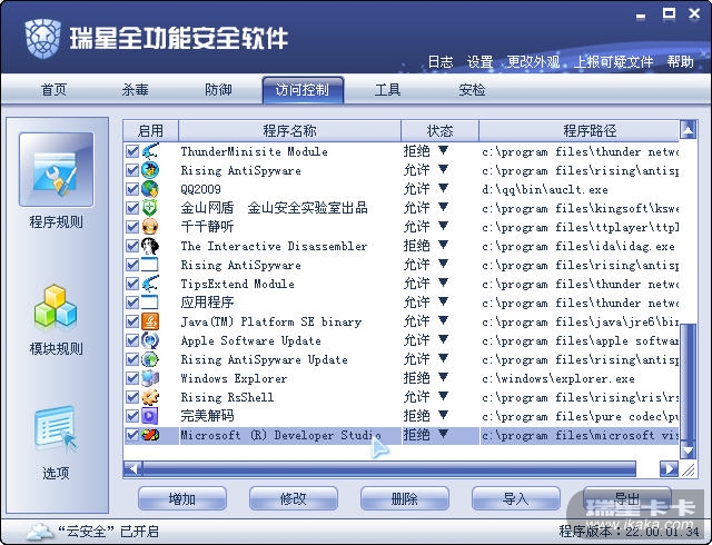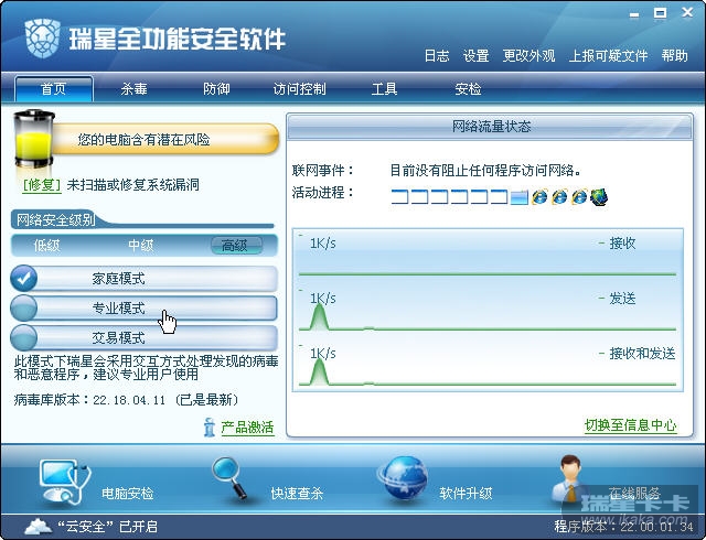 不论是上QQ、QQ音乐、还是游戏都被拒绝,跳出对话:“已拦截:应用程序试图访问网络,被瑞星拦截。”要求“编辑访问规则”。但我不懂!