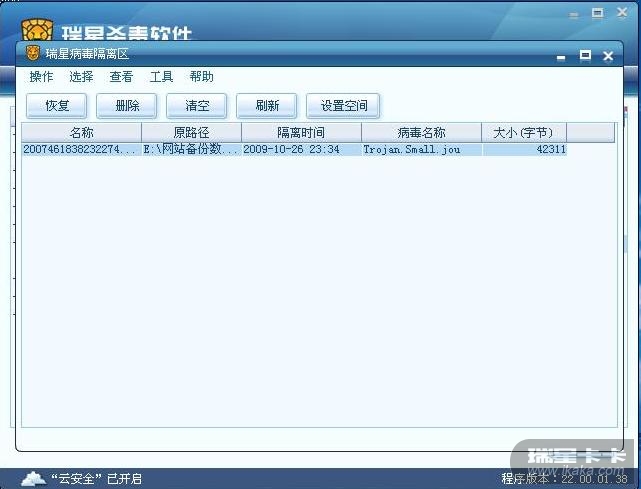 [求助] 如何查看瑞星病毒隔离区中病毒的完整名称和具体地址
