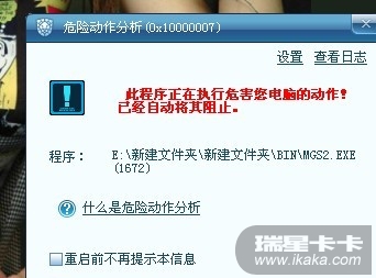刚刚下了游戏,安装后打开游戏,瑞星提示为危险动作,怎么办?应该怎么设置放行通过?!