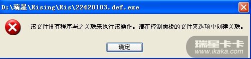 用360体检说病毒库不是最新的·打开瑞星点升级出现“该文件没有程序与之关联来执行该操作,请在控制面板的文件夹选项中创建关联。”点击确定以后出来Ris文件夹无法访问···咋回事·?卸载了重装瑞星·一键还原电脑都不行··搞了一下午了···高手来解答下