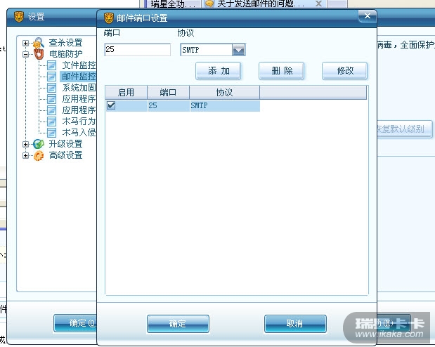 具体情况是这样的,用foxmail6.5版本的设置了hotmail邮件,可以接收,但是发送不了了突然,我之前用的是别的杀毒软件,只是更换会最喜欢的瑞星。