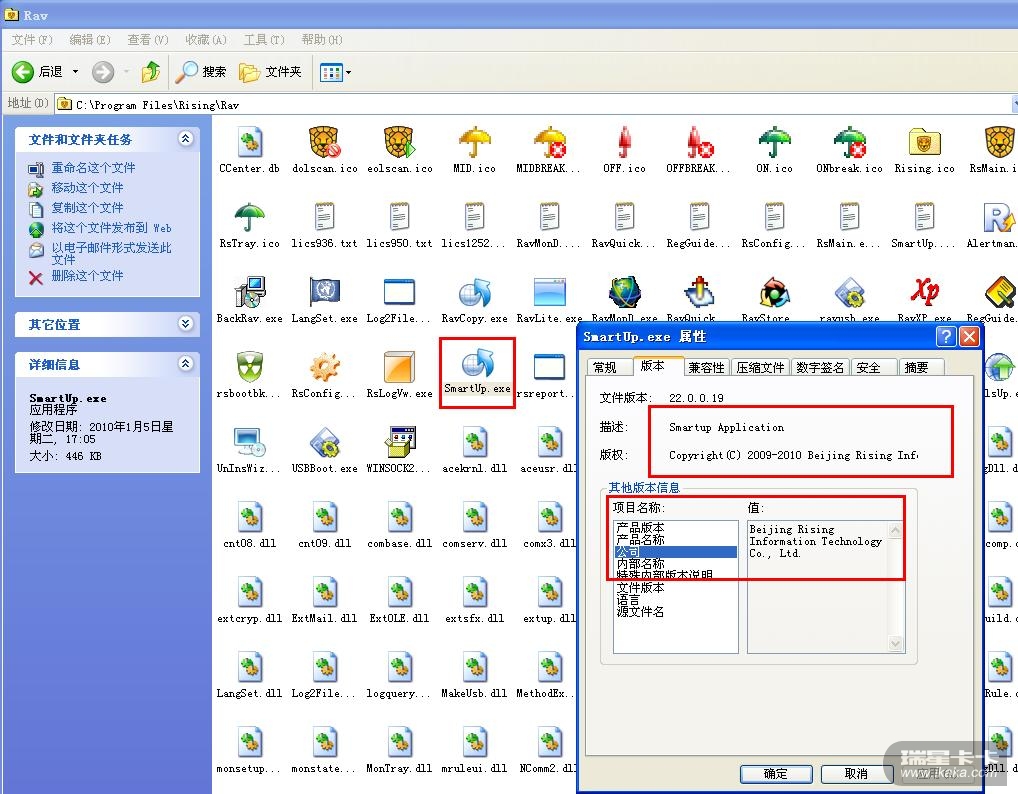 查看其光盘内的原始的瑞星升级程序,明显的异常,可以确定其光盘为盗版光盘