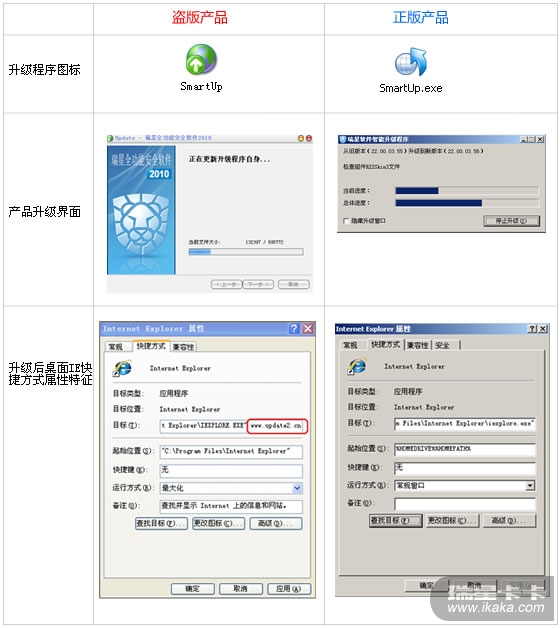 为了提醒广大用户,特将相关盗版产品和正版产品比较的信息予以公示,请广大用户注意甄别,见下表。
