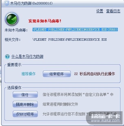 后,一运行就报木马!我宁愿相信是瑞星弄错了!是不是瑞星全功能安全软件太敏感了?还是这个