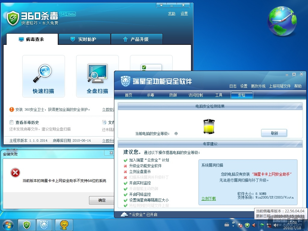 [原创] 瑞星2010&2011暂时不能完美兼容64位win7