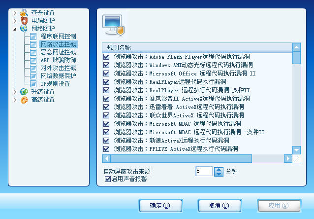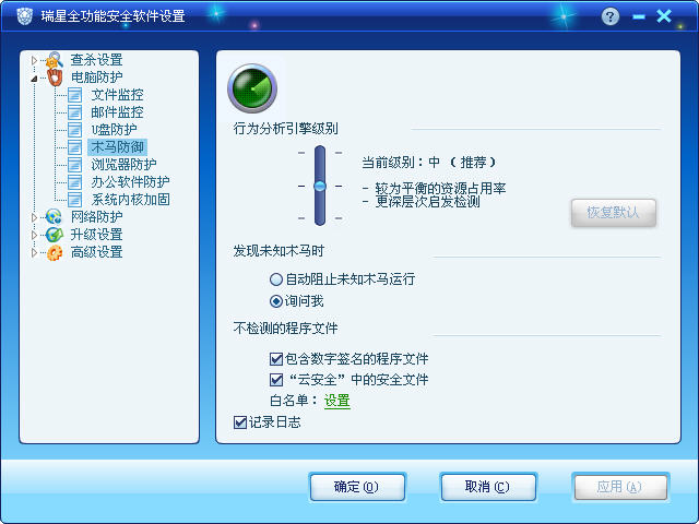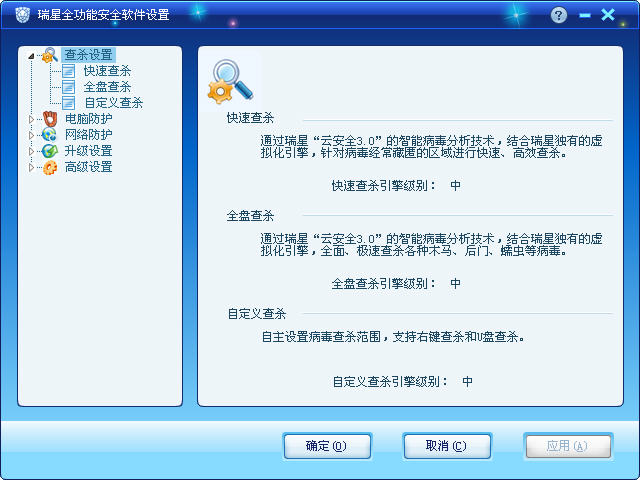 在查杀设置中可以直观看到所有查杀的设定情况。